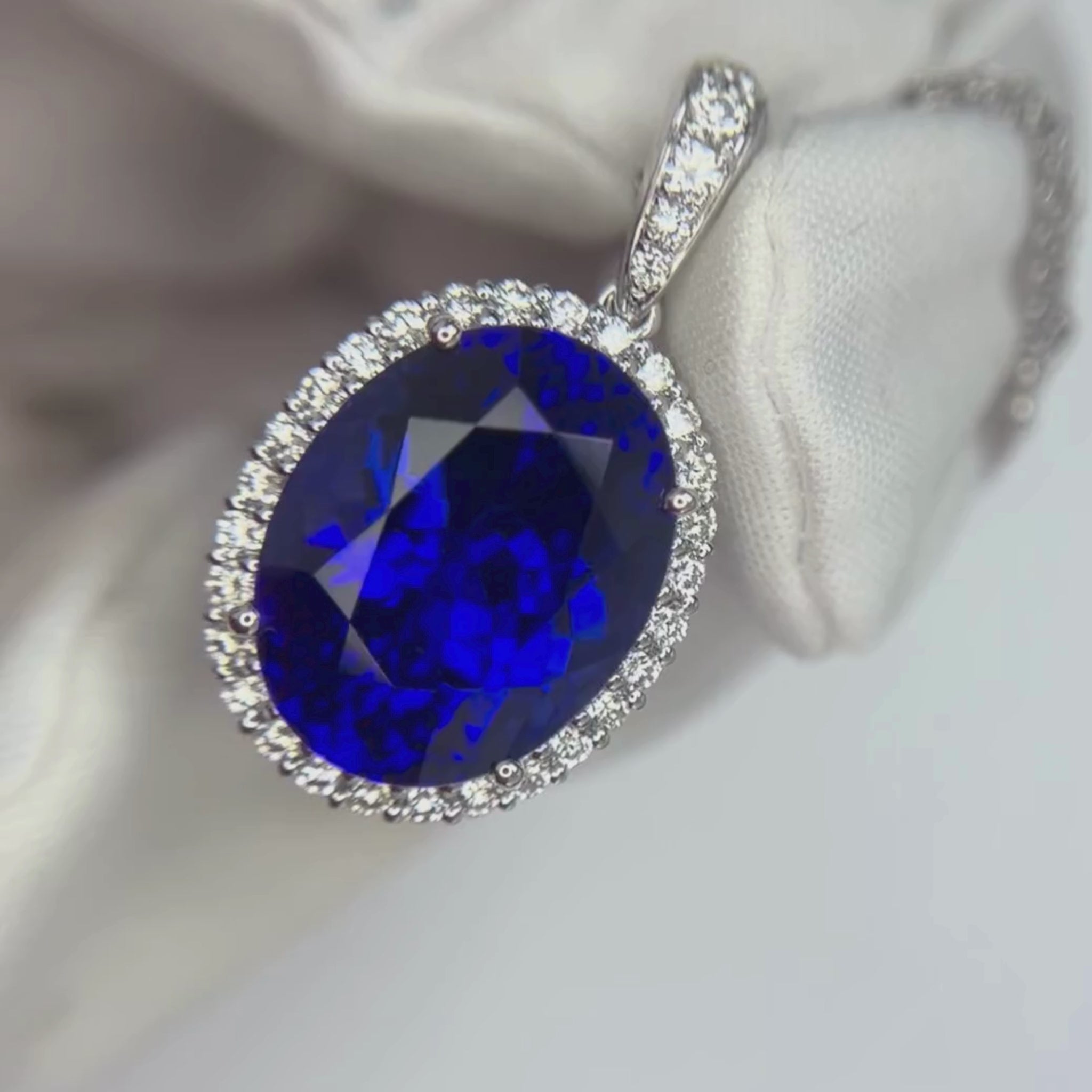 Magnificent 16 Carat Ct Oval Tanzanite Pendant With Diamond Halo