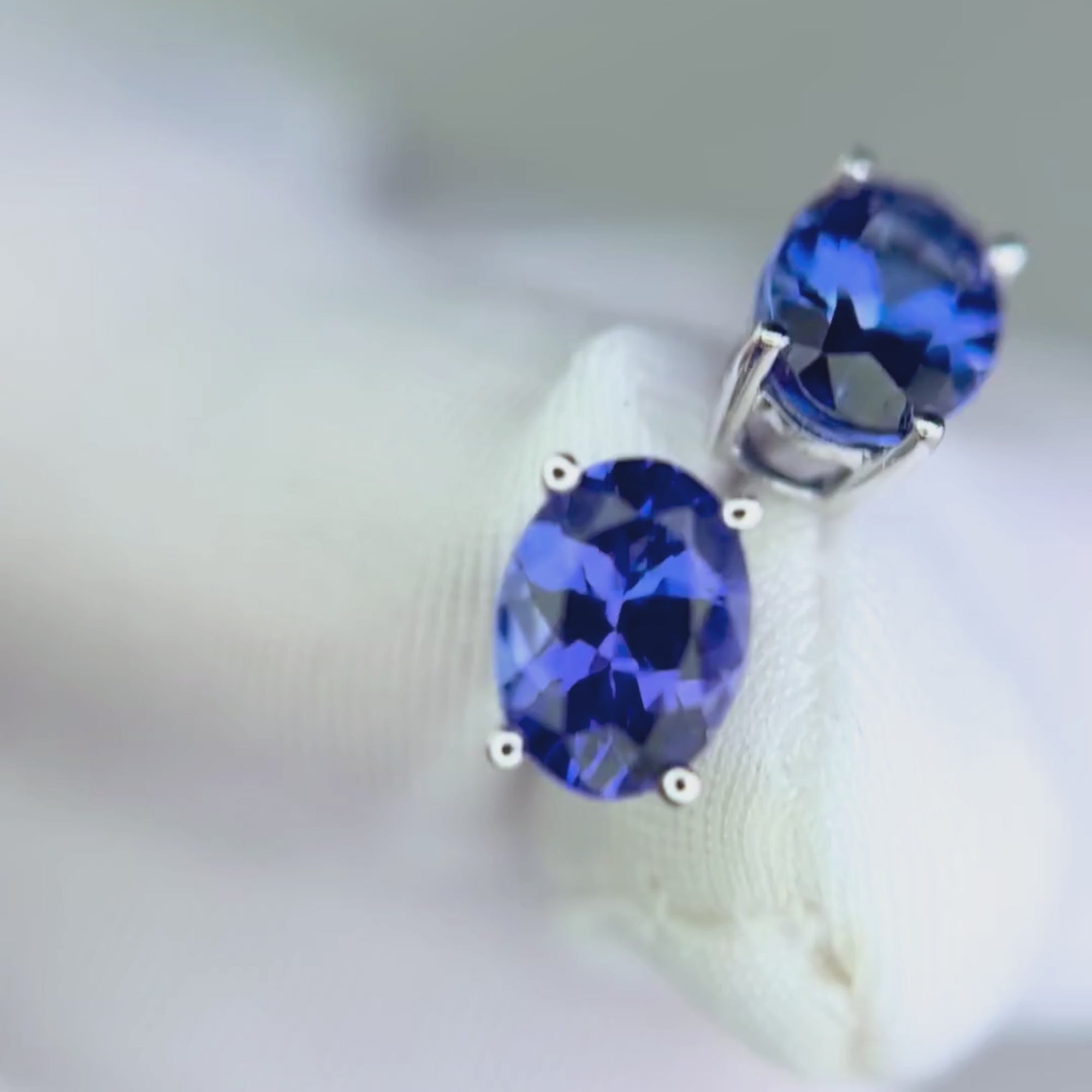 Each tanzanite is flawlessly clean, with a vivid medium violetish-blue hue (definitely not pastel like many others this size), and displays a lovely flash of violet under different lighting conditions.