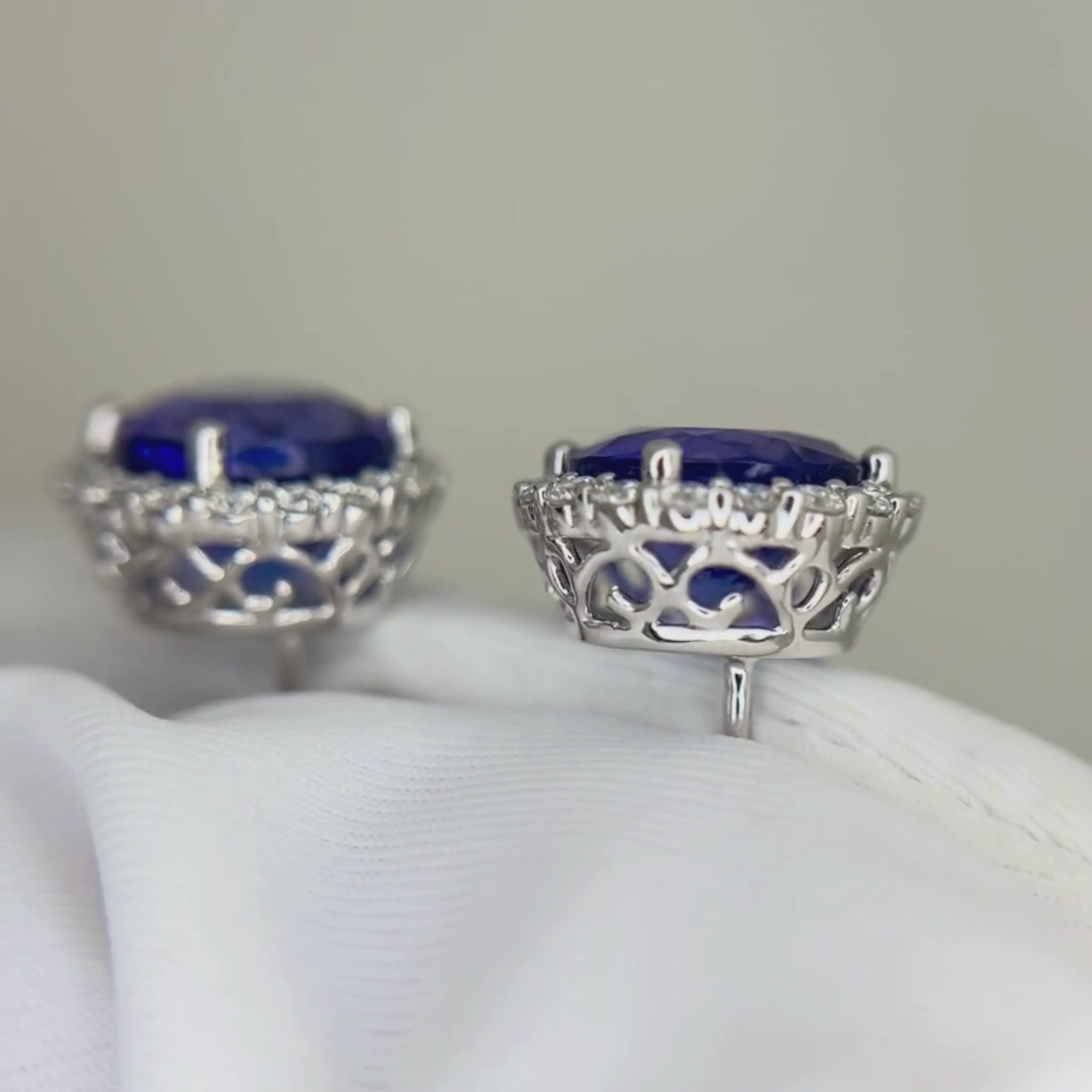 Exceptional Tanzanite (+5 Carat) and Diamond Halo Stud Earrings – 18ct White Gold