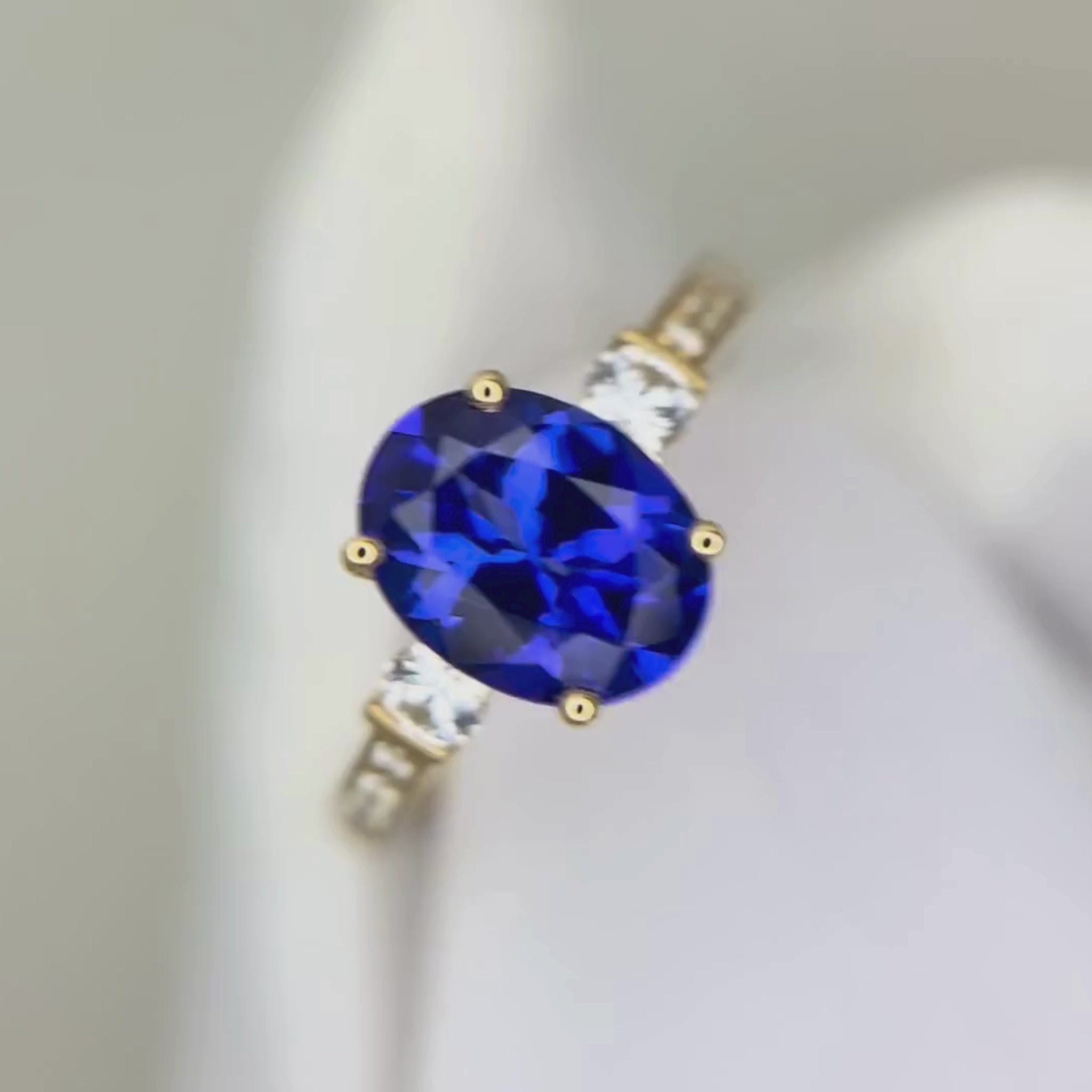 “Evening Sky” Oval Tanzanite & Diamond Ring - Yellow Gold