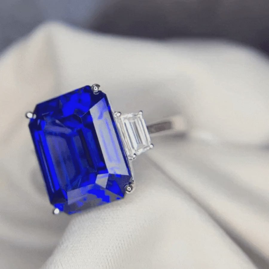 Exceptional 11.00 Ct Emerald Cut Tanzanite & Baguette Diamond Ring Sale price$22,005.00 AUD