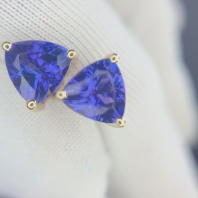 Trillion Cut Tanzanite Stud Earrings in Yellow Gold