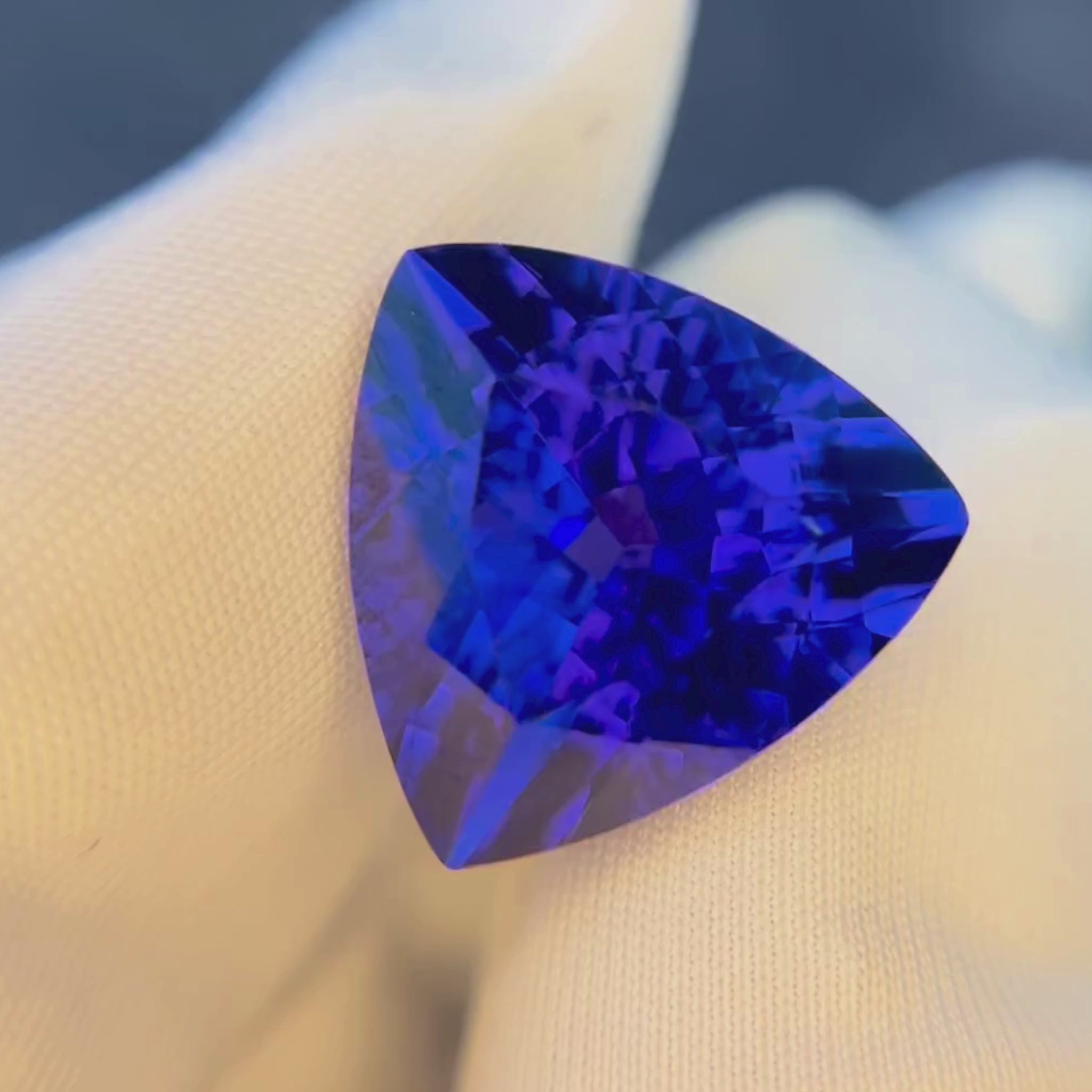 Want a tanzanite gemstone that showcases both blue and violet? This ravishing trillion-cut tanzanite is the perfect choice. Its crystal-clear play of color—known as pleochroism—allows the gem to display two distinct hues at once. As you turn the stone, the blue and violet tones sparkle and shift, creating a rare and captivating effect found only in tanzanite. This stone is a top grade stone, with excellent and deep color saturation, and is about 65% violet and the balance blue.